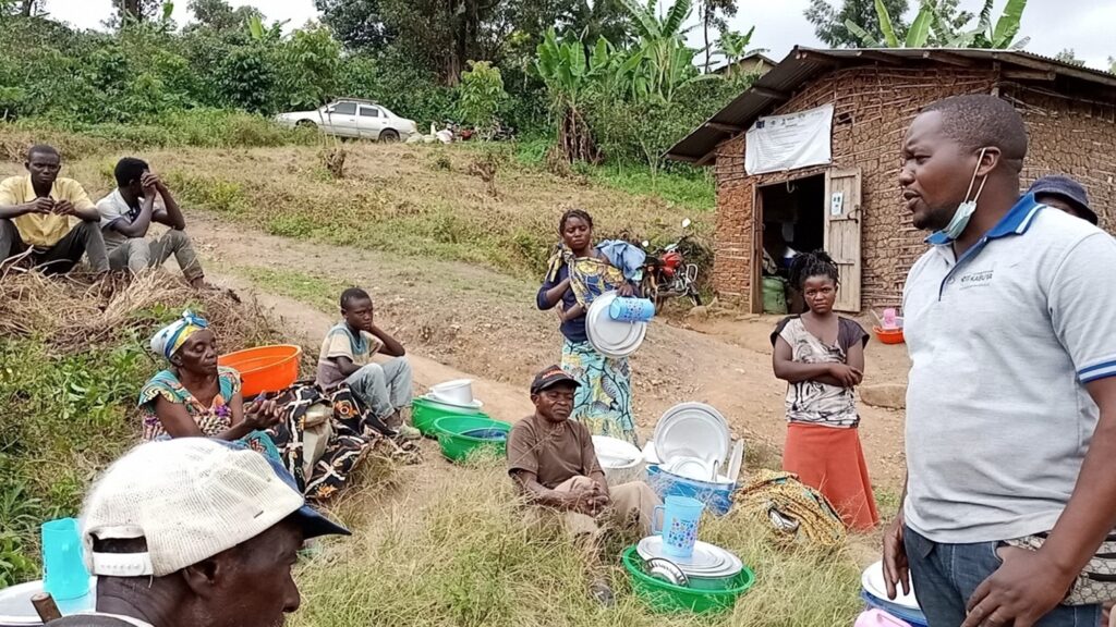C’est dans la nuit du 18 au 19 août 2021 que le village de Katanda a été agressé par des présumés ADF autour de 1h30 de la nuit. Ils ont incendié 32 maisons, égorgé à la machette 9 personnes et enlevé une quarantaine de personnes (hommes, femmes, enfants) en les obligeant à transporter les biens pillés, dont des chèvres, poules, habits,… La coopérative CKK, qui a une microstation de lavage dans ce village, a immédiatement lancé une action de collecte d’habits pour les ménages touchés et a mobilisé des appuis financiers, notamment auprès de l’équipe du partenaire Rikolto, pour équiper ces ménages en ustensiles de cuisine essentiels. La solidarité n’est pas un vain mot dans la coopérative. Shakes Sivasingana, Directeur-gérant de Kawa Kabuya, supervise la distribution de l’assistance de la coopérative à la communauté touchée.